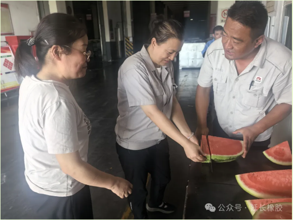 點(diǎn)擊量:261近日,陜西地區(qū)持續(xù)高溫,戶外溫度直逼 40℃。在這樣的悶熱天氣中,延長(zhǎng)橡膠公司的生產(chǎn)一線依舊呈現(xiàn)出一片繁忙的景象。原材料庫(kù)的工作人員們始終堅(jiān)守在庫(kù)區(qū)的各個(gè)崗位上,全力保障全鋼、半鋼輪胎的生產(chǎn)供應(yīng),采供部更是針對(duì)性地開展了一系列 “送清涼” 活動(dòng),為一線人員注入夏日里的清涼動(dòng)力。